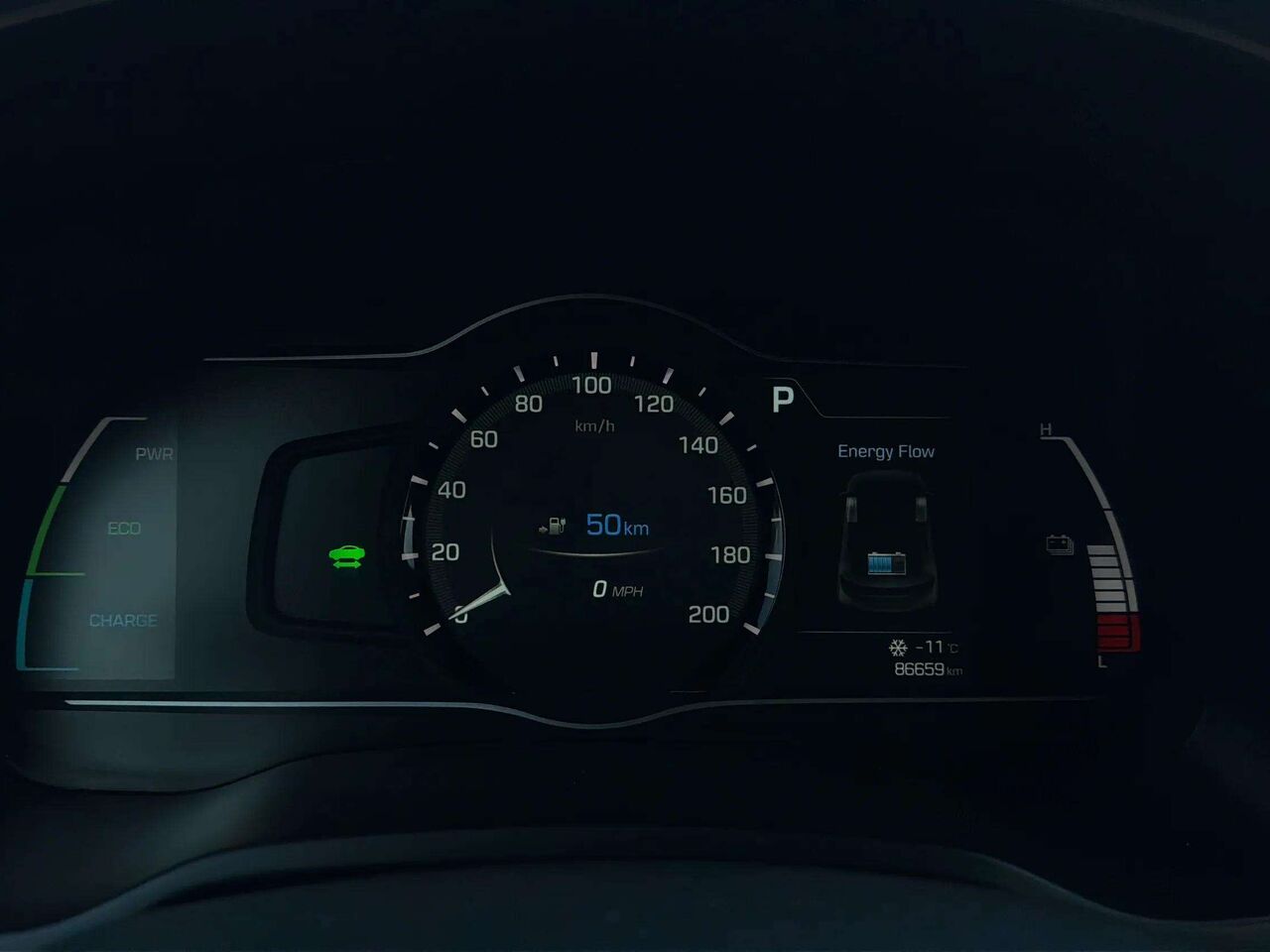 • gauges -inc: speedometer, odometer, traction battery level, power/regen, trip odometer and trip computer