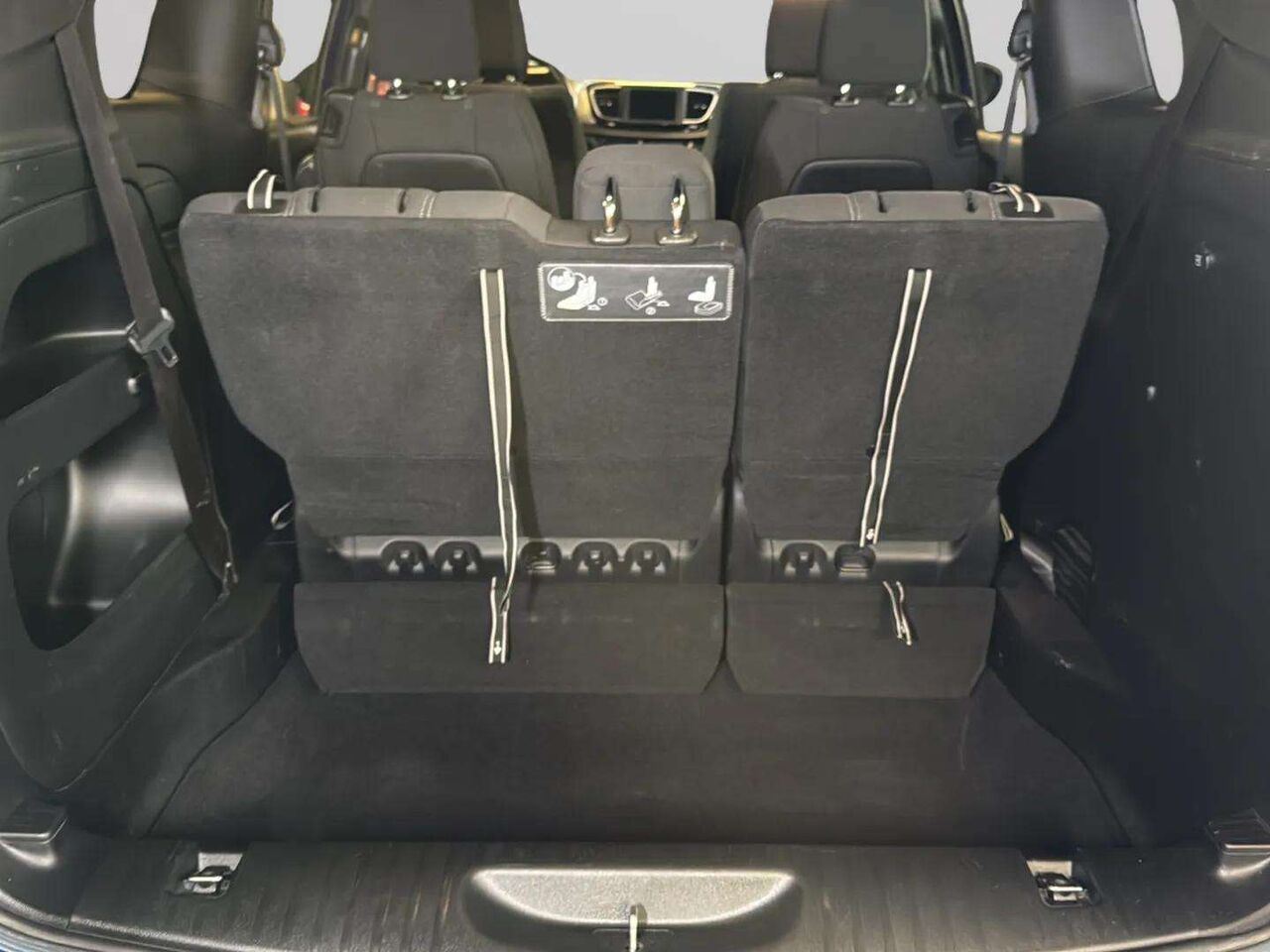 • Banquette divisée de 3e rangée fixe rabattable 60/40 faisant face à l'avant inclinable à réglage manuel rabattable manuellement à plat dans le plancher fixe avec 3 appuie-têtes